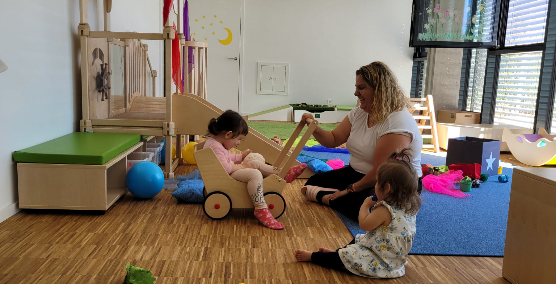 Unsere eingruppige Kinderkrippe für Kinder im Alter vom 0-3 Jahren liegt im Gewerbegebiet Hochgerichtsäcker der Stadt Freudenstadt und bietet Mitarbeitern der Firma Wolf ,sowie allen Familien die in Freudenstadt leben, Betreuungsplätze an. Im Rahmen unserer Öffnungszeit können Sie zwischen den Betreuungsformen Verlängerte Öffnungszeit (VÖ+) sowie Ganztagesbetreuung (GT) wählen.