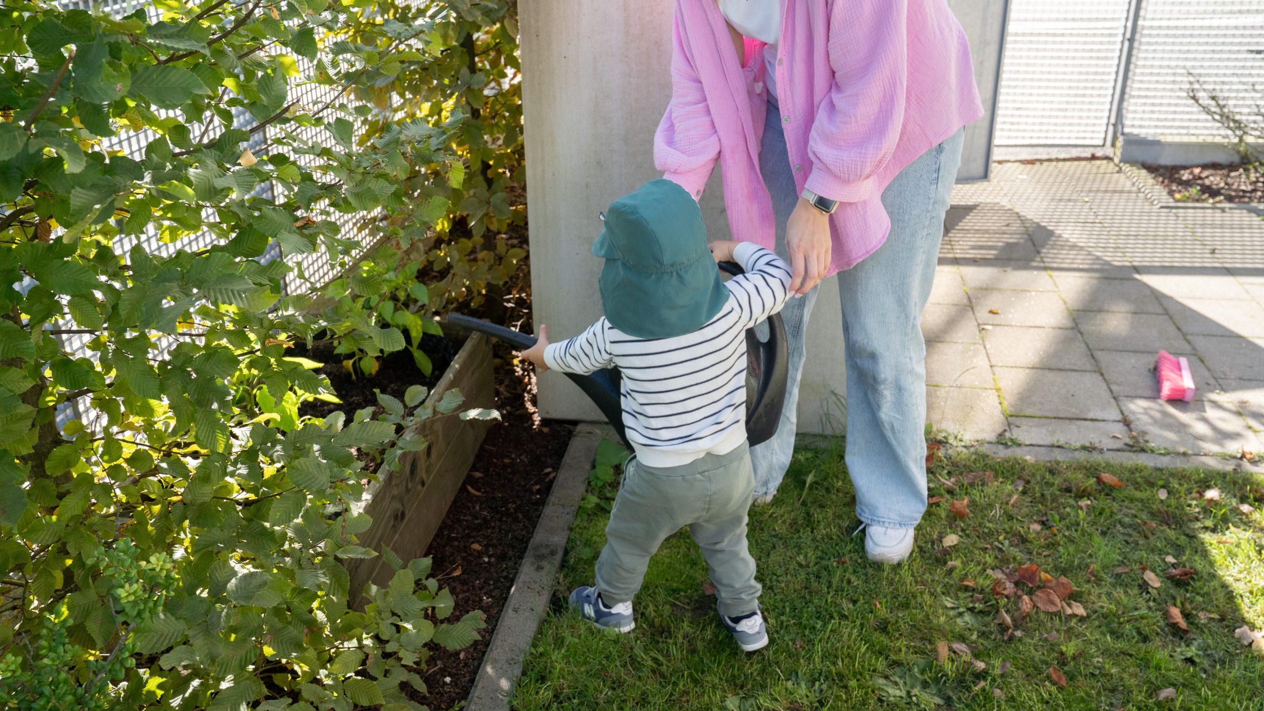 Unser Außengelände ist so gestaltet, dass die Kinder ihr Bewegungsbedürfnis ausleben können. Durch die verschiedenen Untergründe und Materialien machen sie dabei vielfältige Bewegungs- und Sinneserfahrungen.